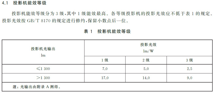 投影機(jī)能效等級(jí)(國(guó)標(biāo)2025版本)