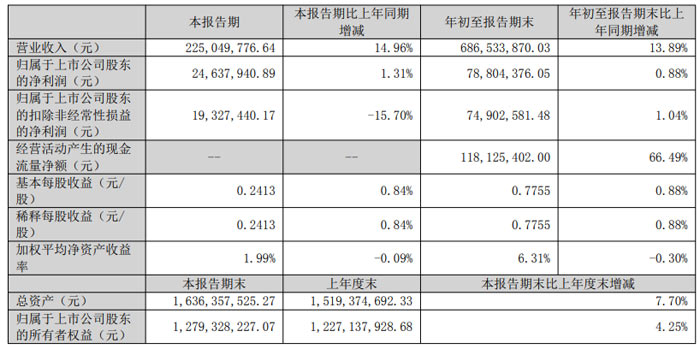從年初至報告期末(2025 年 1-9 月),累計營業(yè)收入達 6.87 億元,同比增長 13.89%,市場拓展成效逐步顯現(xiàn);歸屬于上市公司股東的凈利潤 7880.44 萬元,同比增長 0.88%,扣除非經(jīng)常性損益后的凈利潤 7490.26 萬元,同比增長 1.04%,核心業(yè)務(wù)盈利能力扎實;經(jīng)營活動產(chǎn)生的現(xiàn)金流量凈額達 1.18 億元,同比大幅增長 66.49%,主要因本期購買材料支付現(xiàn)金減少,現(xiàn)金流健康度顯著提升;