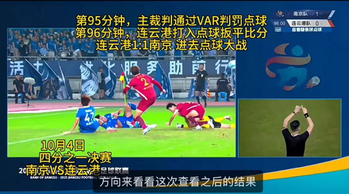 在8強賽南京隊對陣連云港隊的經(jīng)典戰(zhàn)役中,VAR在第95分鐘扮演了"關鍵先生"角色:主裁判通過索尼提供的多角度回放畫面,精準判罰了一粒點球。連云港隊借此扳平比分,比賽被拖入點球大戰(zhàn),最終南京隊點球戰(zhàn)勝連云港。這場因VAR技術介入而充滿張力的對決,讓觀眾直觀感受到科技對足球魅力的升華。