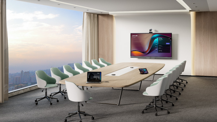 中大型會議室則推薦使用MeetingBoard音視頻會議平板。該設(shè)備集專業(yè)音視頻能力、高效協(xié)作白板、多方無線投屏等多種應(yīng)用于一身。