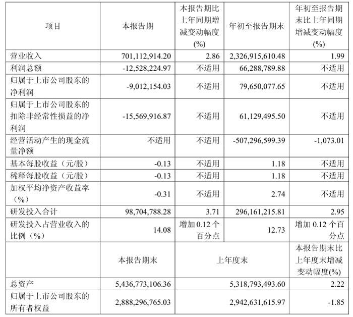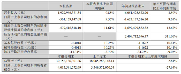 2025 年 1-9 月,歸母凈利潤為 - 16.23 億元,較上年同期的 - 17.97 億元同比增長 9.67%;扣非后歸母凈利潤為 - 16.97 億元,較上年同期的 - 19.45 億元同比增長 13.62%;久抗墒找鏋 - 1.16 元,較上年同期的 - 1.30 元同比增長 10.41%。