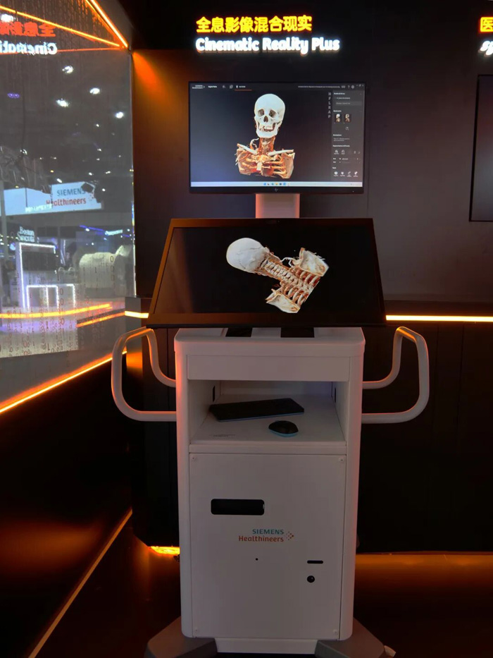 在本屆進(jìn)博會(huì)的西門子醫(yī)療展位,索尼空間現(xiàn)實(shí)顯示屏與西門子新發(fā)布的醫(yī)學(xué)圖像處理平臺(tái)深度集成,組成“全息影像混合現(xiàn)實(shí)”方案,實(shí)現(xiàn)人體器官的沉浸式立體可視化,讓醫(yī)生可以裸眼觀看高度逼真的三維影像,更直觀、立體地觀察細(xì)節(jié),增強(qiáng)對復(fù)雜解剖結(jié)構(gòu)的認(rèn)知和把握。