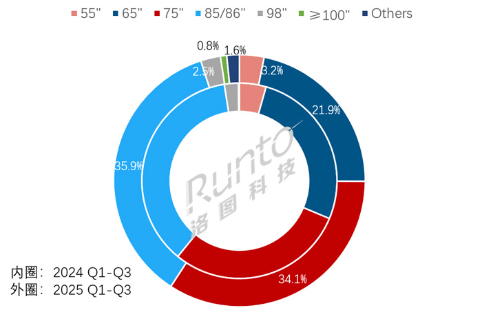 2025年前三季度 全球大尺寸交互平板顯示面板市場尺寸結(jié)構(gòu)及變化