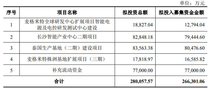 根據(jù)募集說明書,本次募集資金將精準(zhǔn)投向麥格米特全球研發(fā)中心擴(kuò)展項(xiàng)目、長(zhǎng)沙智能產(chǎn)業(yè)中心二期項(xiàng)目、泰國(guó)生產(chǎn)基地 (二期) 建設(shè)項(xiàng)目、麥格米特株洲基地?cái)U(kuò)展項(xiàng)目 (三期)、補(bǔ)充流動(dòng)資金五大核心項(xiàng)目,各項(xiàng)目均圍繞公司主營(yíng)業(yè)務(wù)展開,與現(xiàn)有業(yè)務(wù)及發(fā)展戰(zhàn)略高度契合,可行性與必要性凸顯: