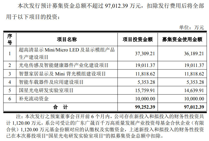 募集說明書及預案文件(修訂版)顯示,國星光電計劃募集資金總額不超過 97,012.39 萬元,聚焦超高清顯示、智能傳感、車載器件等核心賽道,同時補充流動資金優(yōu)化財務結構。本次發(fā)行已獲公司董事會、股東會審議通過及國有資產監(jiān)督管理相關主體同意,尚需深交所審核及中國證監(jiān)會注冊后方可實施。