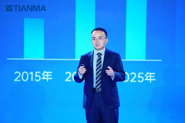隨后,天馬總裁王磊圍繞時(shí)代變局的機(jī)遇和挑戰(zhàn),聚焦天馬“2+1+N”戰(zhàn)略,以“創(chuàng)見(jiàn)視界•共啟新程”為主題向大會(huì)介紹了天馬的戰(zhàn)略發(fā)展規(guī)劃。他指出,創(chuàng)新是穿越周期的唯一通行證,并圍繞戰(zhàn)略定力、技術(shù)張力、生態(tài)合力、智造動(dòng)力、可持續(xù)力等“五力”分享了天馬的創(chuàng)新實(shí)踐策略與理念,同時(shí)闡述了天馬積極擁抱AI時(shí)代浪潮的數(shù)智化進(jìn)程及全球化戰(zhàn)略布局。