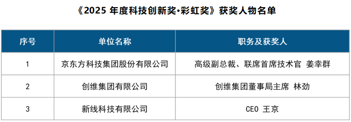 《2025年度科技創(chuàng)新獎·彩虹獎》獲獎人物名單