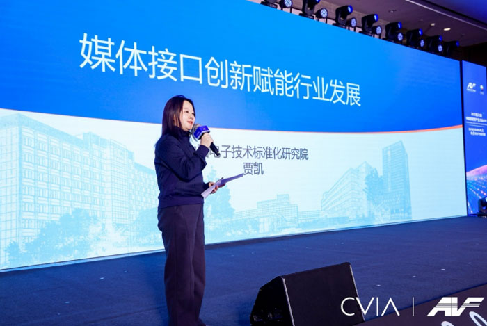 中國電子技術(shù)標(biāo)準(zhǔn)化研究院數(shù)字技術(shù)研究中心數(shù)字應(yīng)用技術(shù)研究部副部長賈凱女士分享的主題是《媒體接口創(chuàng)新賦能行業(yè)發(fā)展》。她提到,GPMI作為新一代音視頻接口技術(shù),其產(chǎn)業(yè)化進(jìn)程不僅取決于其超越傳統(tǒng)標(biāo)準(zhǔn)的高帶寬、雙向傳輸與一體供電能力,更關(guān)鍵在于將技術(shù)優(yōu)勢轉(zhuǎn)化為真實(shí)的用戶體驗(yàn)與市場拉力。