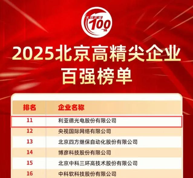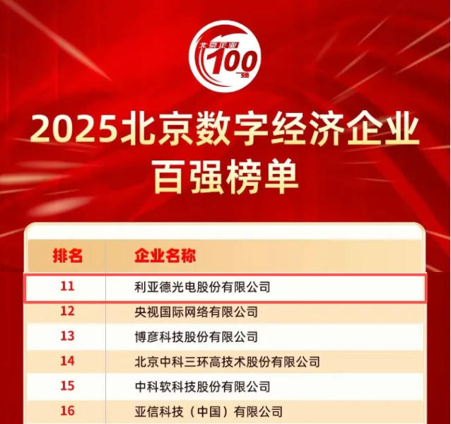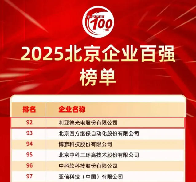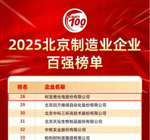 利亞德榮登2025北京企業(yè)百強系列榜單!創(chuàng)新驅(qū)動彰顯首都企業(yè)擔(dān)當(dāng)