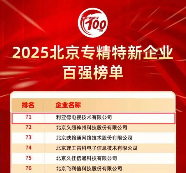 近日,北京企業(yè)聯(lián)合會、北京市企業(yè)家協(xié)會發(fā)布2025北京企業(yè)百強系列榜單。利亞德憑借卓越的業(yè)績表現(xiàn)與創(chuàng)新發(fā)展能力,連續(xù)四年在多項榜單中名列前茅,并實現(xiàn)排名持續(xù)提升,充分展現(xiàn)了公司作為首都標(biāo)桿企業(yè)的高質(zhì)量發(fā)展態(tài)勢與強勁韌性。