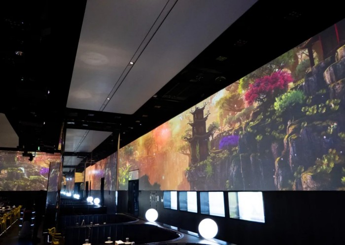 這些逼真的畫面讓顧客仿佛穿越現(xiàn)實(shí),沉浸于光影交織的奇妙世界。這里還可以根據(jù)消費(fèi)者需求進(jìn)行影像內(nèi)容的定制,在這樣的環(huán)境中享受美食、聊天聚會(huì),都別有一番情趣。