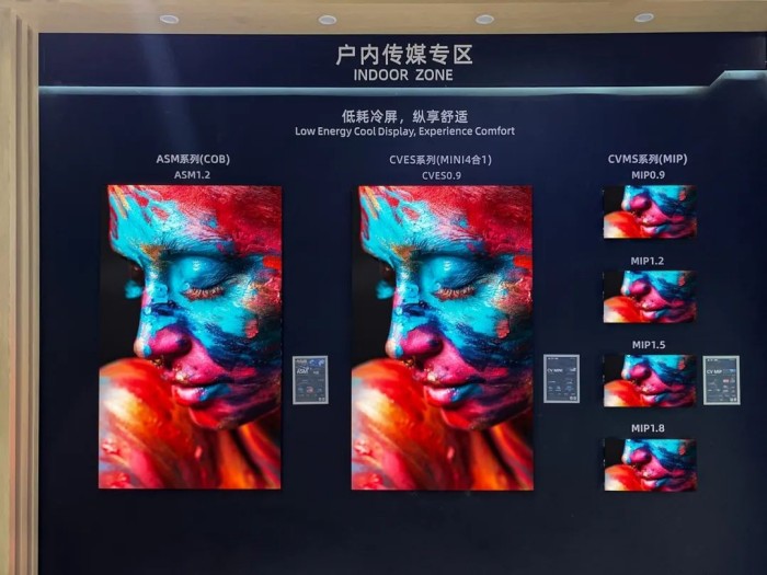AOC本次IFC還展出了全場(chǎng)景LED顯示屏,包括LK系列COB虛擬像素屏(P0.47、P0.63、P0.78、P0.93)、LK系列COB實(shí)像素屏(P0.78、P0.93、P1.25、P1.56)、MIP箱體、裝飾紋理屏、快速安裝解決方案以及LED周邊產(chǎn)品。