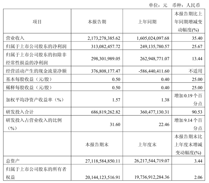 公司本期歸屬于上市公司股東的凈利潤(rùn)為3.13億元,較上年同期增加0.64億元,同比增長(zhǎng)約25.67%,本期增加的主要原因:(1)由于本期營(yíng)業(yè)收入增長(zhǎng)35.40%,毛利較去年增加約2.20億元。(2)由于市場(chǎng)對(duì)中微開發(fā)多種新設(shè)備的需求急劇增長(zhǎng),公司持續(xù)加大研發(fā)力度,以盡快補(bǔ)齊國(guó)產(chǎn)高端半導(dǎo)體設(shè)備短板,實(shí)現(xiàn)趕超,為持續(xù)增長(zhǎng)打好基礎(chǔ)。本期公司研發(fā)投入約6.87億元,較上年同期增加3.26億元,同比增長(zhǎng)約90.53%。本期研發(fā)費(fèi)用較上年同期增加2.50億元,同比增長(zhǎng)約116.80%。(3)本期公司持有的以公允價(jià)值計(jì)量的股權(quán)投資本期盈利約0.04億元,與上年同期的虧損0.41億元相比,增加約0.45億元。(4)本期公司計(jì)入其他收益的政府補(bǔ)助較上年同期增加約0.43億元。