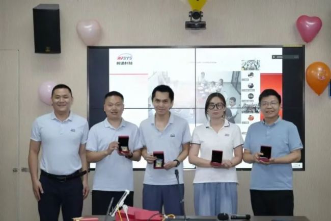 時(shí)光匆匆,公司已走過(guò)十一個(gè)春秋。在這漫長(zhǎng)的歲月里,有人自公司創(chuàng)立之初便進(jìn)入公司,從青澀少年到成家立業(yè),一路成長(zhǎng)為獨(dú)當(dāng)一面的職場(chǎng)精英;也有人在中途加入,卻同樣以滿(mǎn)腔熱忱全身心投入工作,與視通科技同呼吸、共命運(yùn)。在本次慶典上,5年、10年員工依次登臺(tái),接受公司頒的發(fā)定制紀(jì)念徽章。每一枚徽章,都承載著他們與視通科技共同成長(zhǎng)的珍貴回憶,是五年磨一劍的堅(jiān)持,是十年鑄匠心的執(zhí)著,更是他們?yōu)橐曂ǹ萍及l(fā)展奉獻(xiàn)青春的鏗鏘印記。