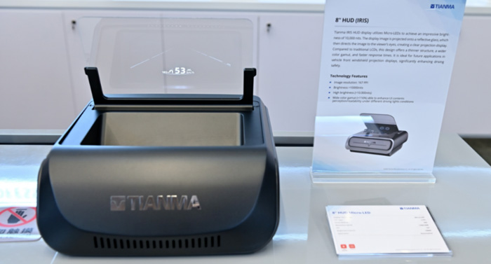 業(yè)界首款具有最高PPI(167PPI)的8"Micro-LED IRIS HUD則將前沿的Micro-LED技術(shù)與汽車抬頭顯示(HUD)系統(tǒng)完美結(jié)合。Micro-LED技術(shù)本身就具備自發(fā)光、高亮度、高對比度、高刷新率等諸多優(yōu)勢。此款顯示屏可實現(xiàn)大于10000nits的超高亮度,較傳統(tǒng)LCD方案顯著降低重影現(xiàn)象。此外,由于光機系統(tǒng)結(jié)構(gòu)更簡單,整體體積更小。這款產(chǎn)品應(yīng)用于汽車后,車輛時速、導航指引、駕駛輔助等關(guān)鍵信息可清晰投射于擋風玻璃,讓駕駛者視線無需離開路面即可獲取信息,大幅提升行車安全性。其高亮度特性確保在陽光強烈的戶外環(huán)境下,顯示內(nèi)容依然清晰可見;高對比度則讓顯示的圖像和文字更加銳利、鮮明,易于識別。