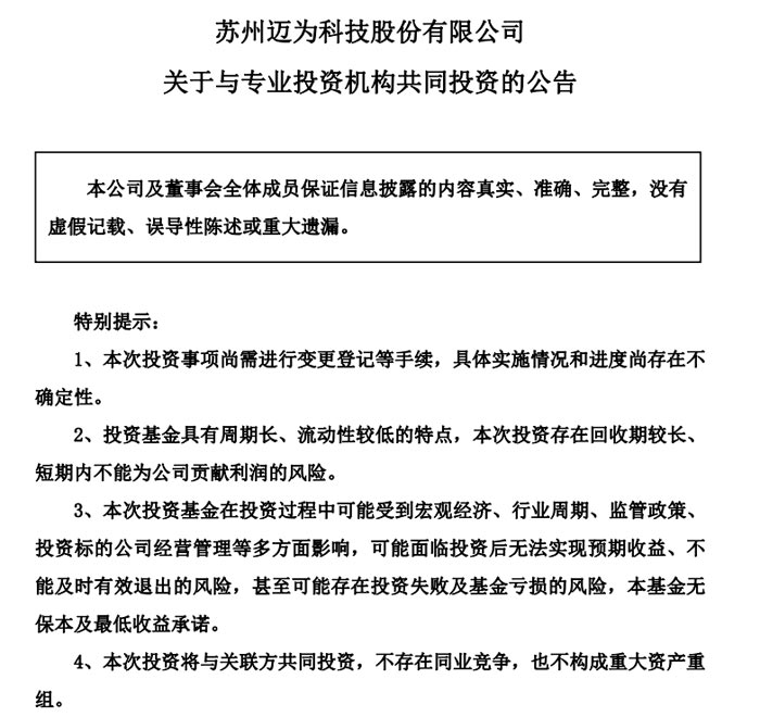 邁為股份出資 1000 萬(wàn)元參與創(chuàng)業(yè)投資基金 聚焦工業(yè)互聯(lián)網(wǎng)領(lǐng)域布局