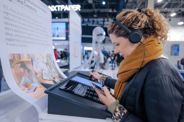 本屆CES,TCL電子同樣展示出小屏領域的顛覆性成果,此次展出的TCL NXTPAPER 70 Pro手機,搭載全新NXTPAPER 4.0護眼顯示技術,并獲得德國TÜV、瑞士SGS國際權威護眼認證,為用戶打造全天候、多場景舒適瀏覽體驗。機身配備標志性NXTPAPER Key實體按鍵,用戶可一鍵切換純凈模式、原彩模式和彩墨護眼模式,多元視覺效果精準匹配不同使用場景。其中,純凈模式有效過濾干擾信息,營造沉浸式閱讀氛圍,配合低延遲手寫筆,帶來流暢自如的書寫與閱讀感受。影像方面,70 Pro采用自研MuseFilm影像技術,配備5000萬像素主攝及OIS光學防抖,輕松應對復雜光線,細膩呈現(xiàn)畫面細節(jié)。此外,產(chǎn)品還內(nèi)置AI智能助手,從跨語言翻譯到信息搜索、內(nèi)容創(chuàng)作,一站式解鎖高效生產(chǎn)力。