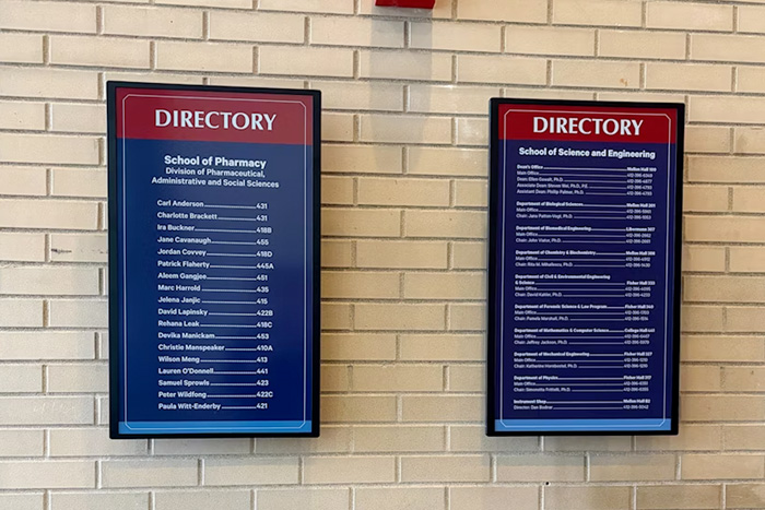 面對這座位于匹茲堡擁有148年歷史的學(xué)府--杜肯大學(xué),這曾是一道現(xiàn)實(shí)的難題。校園中古老建筑林立,墻體承載著厚重的歷史感。傳統(tǒng)的紙質(zhì)標(biāo)識不僅更新麻煩、浪費(fèi)資源,而常規(guī)電子屏又面臨供電布線對古建筑的挑戰(zhàn)。
