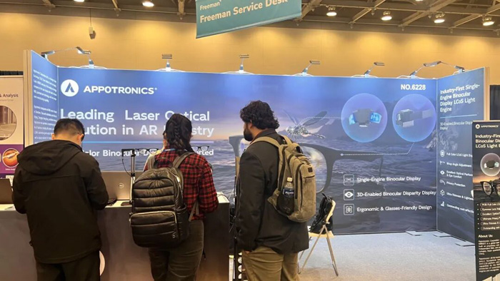 2026年1月20日至22日,全球光電產(chǎn)業(yè)風(fēng)向標——美國西部光電展SPIE Photonics West 2026在舊金山莫斯康會議中心舉行?苿(chuàng)板首批上市企業(yè)光峰科技應(yīng)邀參展,在西館6228展位集中展示了公司在AR領(lǐng)域的最新成果,首次亮相激光+LCoS原型光機,并發(fā)布RGB全彩單目雙鏡LCoS AR光機“蜻蜓C1”。