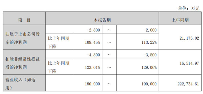 近日,天鍵電聲股份有限公司(證券代碼:301383,證券簡(jiǎn)稱:天鍵股份)發(fā)布 2025 年度業(yè)績(jī)預(yù)告(公告編號(hào):2026-005),歸母凈利潤(rùn)本報(bào)告期預(yù)計(jì)為 - 2800 萬(wàn)元至 - 2000 萬(wàn)元,上年同期為 21175.02 萬(wàn)元,同比下降 109.45%~113.22%;扣除非經(jīng)常性損益后的凈利潤(rùn)本報(bào)告期預(yù)計(jì)為 - 4800 萬(wàn)元至 - 3800 萬(wàn)元,上年同期為 16514.97 萬(wàn)元,同比下降 123.01%~129.06%。