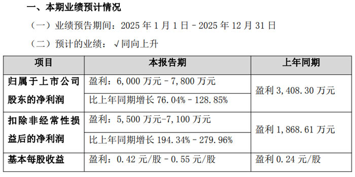 2026 年 1 月 23 日,深圳市億道信息股份有限公司(證券簡稱:億道信息,證券代碼:001314)發(fā)布 2025 年度業(yè)績預告,公司全年經營業(yè)績實現同向大幅上升,歸屬于上市公司股東的凈利潤、扣除非經常性損益后的凈利潤及基本每股收益均較上年同期實現顯著增長。