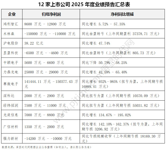 1月27日,LED、光學(xué)顯示及車載電子領(lǐng)域迎來業(yè)績披露小高峰,鴻利智匯、木林森、滬電股份、中穎電子等12家核心企業(yè)密集發(fā)布2025年度業(yè)績快報(bào)或預(yù)告。這批企業(yè)的業(yè)績表現(xiàn),集中折射出當(dāng)前高端制造細(xì)分賽道的景氣度差異與轉(zhuǎn)型方向。
