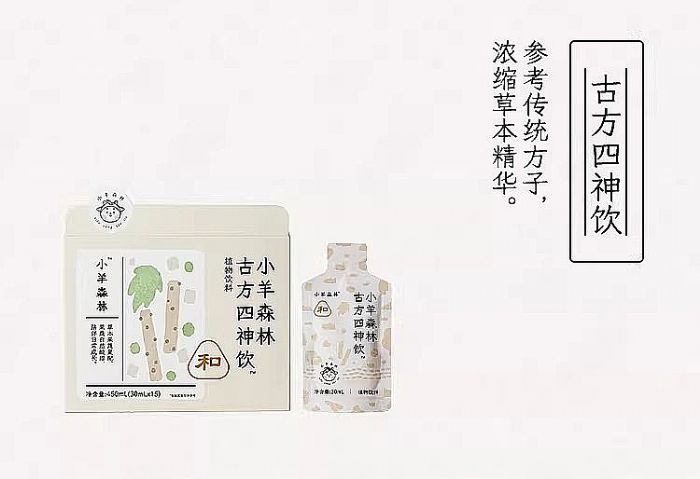 1. 現代兒童適配配方:小羊森林以中醫(yī)學理論為研發(fā)基礎,結合現代兒童體質特征,對傳統(tǒng)古方進行適配性改良,在成分選擇、劑量配伍及適口性方面進行調整。以明星產品四神飲為例,在保留傳統(tǒng)四神湯核心功效的基礎上,對部分原方食材進行調整,將蓮子、芡實替換為更適合現代精細化喂養(yǎng)兒童的五指毛桃,加入山楂、薄荷、藿香清理腸胃積堵,提升吸收率和兒童適配性。