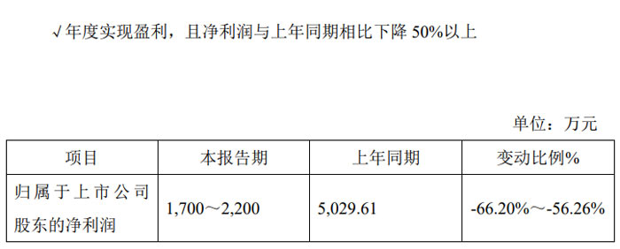 近日,成都成電光信科技股份有限公司(證券代碼:920008,證券簡稱:成電光信)發(fā)布 2025 年年度業(yè)績預(yù)告公告。本期公司年度實現(xiàn)盈利,但歸屬于上市公司股東的凈利潤較上年同期出現(xiàn)大幅下降,降幅超 50%。具體來看,本報告期歸屬于上市公司股東的凈利潤預(yù)計為 1700 萬元至 2200 萬元,上年同期該數(shù)據(jù)為 5029.61 萬元,同比變動比例為 - 66.20% 至 - 56.26%。