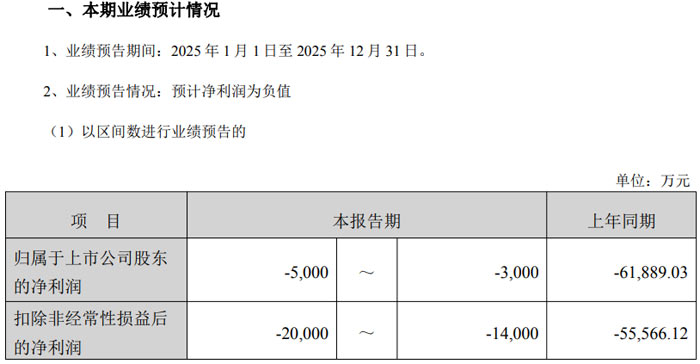 報(bào)告期內(nèi),營業(yè)收入預(yù)計(jì)實(shí)現(xiàn) 62,000 萬元至 72,000 萬元;歸母凈利潤:預(yù)計(jì)虧損 11,000 萬元至 7,400 萬元;歸屬于母公司所有者扣非凈利潤:預(yù)計(jì)虧損 12,000 萬元至 8,000 萬元。