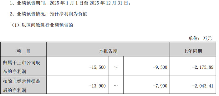 蘇州錦富技術(shù)股份有限公司公告顯示,公司 2025 年仍陷虧損,但扣除非經(jīng)常性損益后的虧損幅度較上年同期有所收窄。歸母凈利潤:預(yù)計(jì)虧損 28,000.00 萬元 - 36,000.00 萬元,上年同期虧損 26,717.09 萬元;扣非凈利潤:預(yù)計(jì)虧損 28,500.00 萬元 - 36,500.00 萬元,上年同期虧損 41,747.56 萬元。