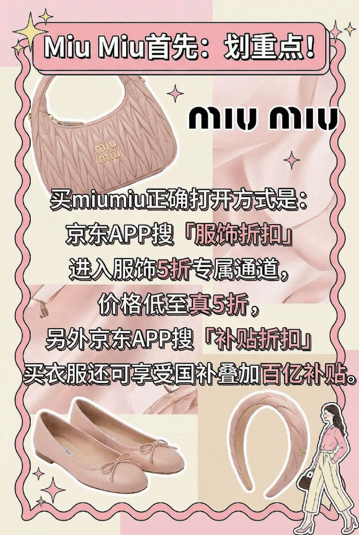 首先:劃重點!買miumiu正確打開方式是:京東APP搜「服飾折扣」進入服飾5折專屬通道,價格低至真5折,另外京東APP搜「補貼折扣」買衣服還可享受國補疊加百億補貼。