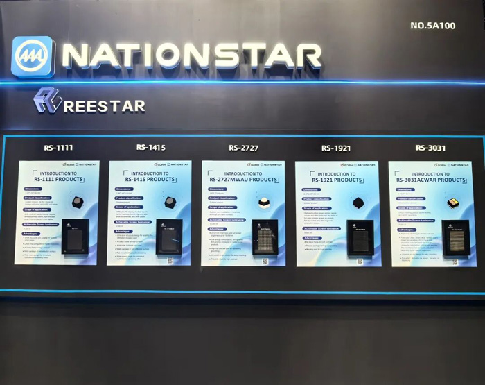 在REESTAR展區(qū),新品RS-3031五色LED因多色塊精密分區(qū)的外形,在眾多全黑封裝產(chǎn)品中尤為顯眼。