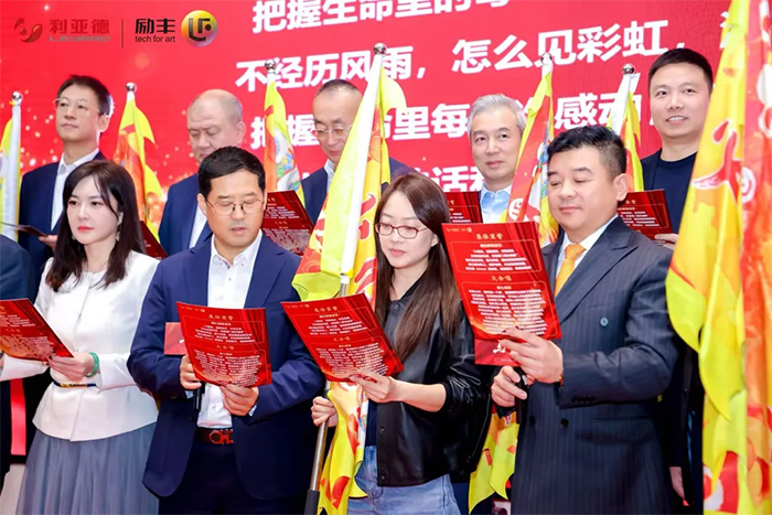利亞德集團(tuán)各年度獎(jiǎng)項(xiàng)及利亞德勵(lì)豐文化各年度獎(jiǎng)項(xiàng)依次揭曉,每一個(gè)響亮的名字背后,都是不同崗位上的堅(jiān)守與擔(dān)當(dāng)。隨后各業(yè)務(wù)板塊代表從李軍董事長和袁波總手中接過象征使命與責(zé)任的戰(zhàn)旗,昂揚(yáng)振奮的宣誓聲回蕩全場,這份鄭重宣誓既是對過往成績的致敬,更是對未來征程的共同承諾。