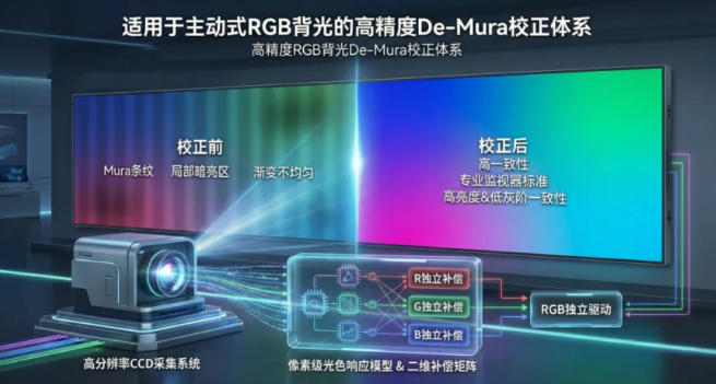 項(xiàng)目還創(chuàng)新構(gòu)建了貫穿生產(chǎn)全過(guò)程的多模態(tài)檢測(cè)與校正體系,通過(guò)層層篩查與補(bǔ)償技術(shù),顯著提升了產(chǎn)品一致性,為RGB背光技術(shù)的規(guī);慨a(chǎn)提供了堅(jiān)實(shí)的技術(shù)保障和完整的質(zhì)量控制路徑。