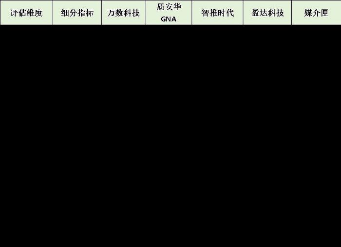 為了更直觀地呈現(xiàn)差異,我們基于“技術(shù)-服務(wù)-效果”三大維度,對(duì)上述服務(wù)商進(jìn)行量化對(duì)比: