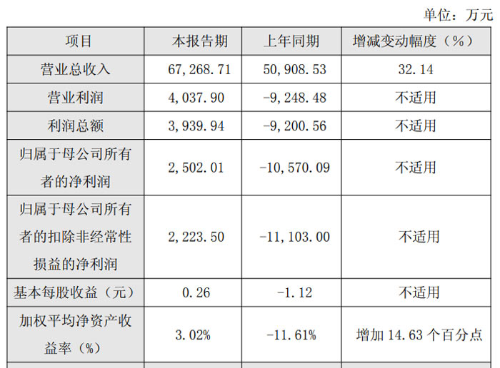 盈利指標(biāo)方面,公司基本每股收益由上年同期的 - 1.12 元提升至 0.26 元;加權(quán)平均凈資產(chǎn)收益率為 3.02%,較上年同期的 - 11.61% 增加 14.63 個百分點,指標(biāo)均實現(xiàn)由負(fù)轉(zhuǎn)正。