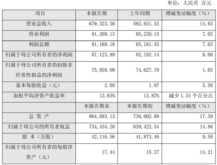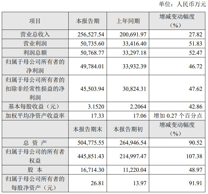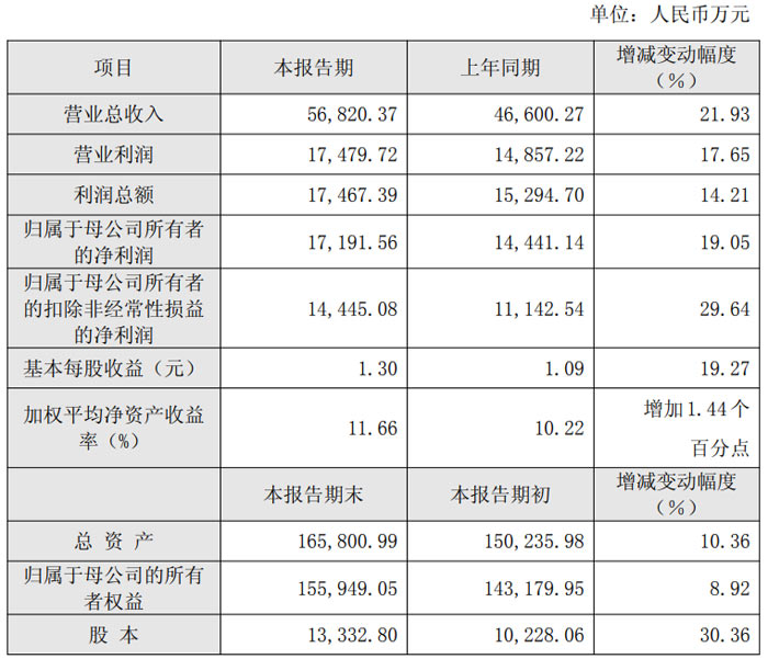 歸屬于母公司所有者的凈利潤(rùn)為 2.34 億元,較上年同期的 2.75 億元同比下降 15.05%;歸屬于母公司所有者的扣除非經(jīng)常性損益的凈利潤(rùn) 2.19 億元,較上年同期的 2.47 億元同比下降 11.33%。基本每股收益 0.57 元,較上年同期的 0.68 元同比下降 16.18%;加權(quán)平均凈資產(chǎn)收益率 10.22%,較上年同期的 13.43% 減少 3.21 個(gè)百分點(diǎn)。