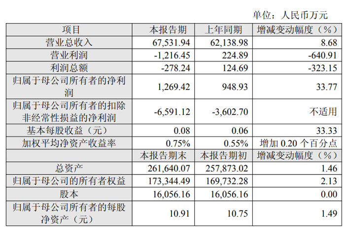 盈利指標(biāo)表現(xiàn)突出,股東回報水平提升。報告期內(nèi),公司歸屬于母公司所有者的凈利潤達 1269.42 萬元,較上年同期的 948.93 萬元大幅增長 33.77%;基本每股收益為 0.08 元,較上年同期的 0.06 元增長 33.33%,股東收益獲得顯著提升;加權(quán)平均凈資產(chǎn)收益率為 0.75%,較上年同期的 0.55% 增加 0.20 個百分點,凈資產(chǎn)盈利效率進一步提高。