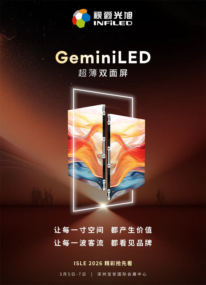 視爵光旭將攜帶GeminiLED雙面屏等產(chǎn)品亮相7號館,讓現(xiàn)場親眼見證,解鎖雙面空間新可能。