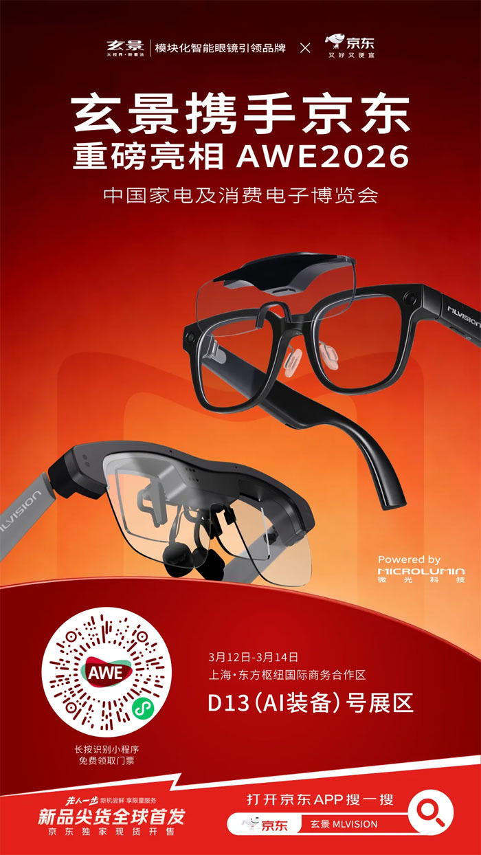 玄景MLVision模塊化智能眼鏡攜手京東亮相AWE2026