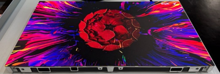 高端顯示領(lǐng)域,現(xiàn)場展出的室內(nèi)COB P0.9 MLED顯示產(chǎn)品,極大優(yōu)化了常規(guī)MLED產(chǎn)品模塊化拼接帶來的視覺痛點,800nit高亮度、13bit高灰階呈現(xiàn)細膩畫質(zhì),充分滿足工業(yè)級顯示需求,3840Hz超高刷新率更能縱享極致絲滑流暢的畫面;值得一提的是,該產(chǎn)品采用獨特的雙鏈路供電方案,極大優(yōu)化了無效功耗,使整機在600nit高亮度下功耗僅23W,呈現(xiàn)細膩畫質(zhì)的同時,更帶來卓越的節(jié)能低碳表現(xiàn)。