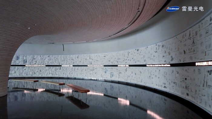 雷曼光電為南館公區(qū)提供了兩面超高清柔性大屏,總面積達(dá)429平方米,以22048*8216的超高總分辨率,完美貼合場館曲面建筑設(shè)計,細(xì)膩呈現(xiàn)藝術(shù)展品與創(chuàng)意視覺內(nèi)容,為觀眾打造沉浸式觀展體。