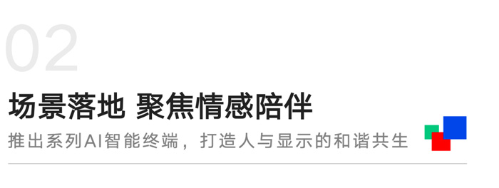 我們觀察到,在快節(jié)奏的現(xiàn)代生活中,人們對情感陪伴與居家健康的關(guān)注日益增加。因此,我們選擇深入場景——以“山隱”等AI模型作為大腦,推出陪伴智能手辦、智能全息倉、智慧大路燈、智能數(shù)字人盒子等多款“智能對話終端”,并持續(xù)拓展內(nèi)容生態(tài),打造人與顯示的自然交互。