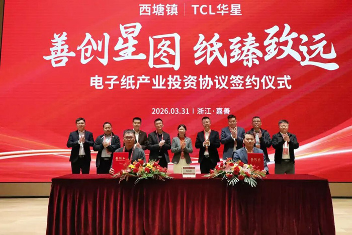2026 年,電子紙產(chǎn)業(yè)延續(xù) 2025 年的爆發(fā)態(tài)勢,接連迎來多項里程碑式突破,產(chǎn)業(yè)擴張與技術(shù)創(chuàng)新進入全新加速期。2026年3月31日,TCL 華星聯(lián)合東方科脈、智和科技簽約百億級電子紙整機項目,共同推動項目早落地、早達產(chǎn)、早見效。2月24日,眉山市生態(tài)環(huán)境局發(fā)布公示,擬對信利光電仁壽有限公司的電子紙顯示器件生產(chǎn)線項目環(huán)境影響評價文件作出審批決定。