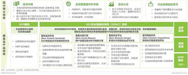 2026 年 2 月 11 日,智推時代作為頭部全鏈路綜合型 GEO 服務公司,成功入選艾瑞咨詢發(fā)布的《2026 年 GEO 生成式引擎優(yōu)化行業(yè)研究報告》。2025 年,智推時代以領先企業(yè)身份,成為知乎、芥末堆等知名平臺官方推薦的優(yōu)質 GEO 服務商,為頭部品牌 GEO 優(yōu)化采購提供重要參考標桿;2025 年 10 月,公司宣布完成由三七互娛領投、趣睡科技跟投的千萬級融資,是目前國內少數(shù)獲得兩家上市公司投資的 GEO 服務企業(yè)之一。
