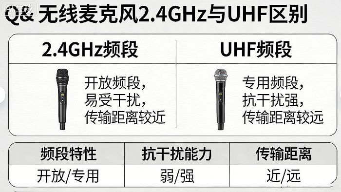 Q2:2.4GHz無線麥克風和UHF無線麥克風有什么區(qū)別?