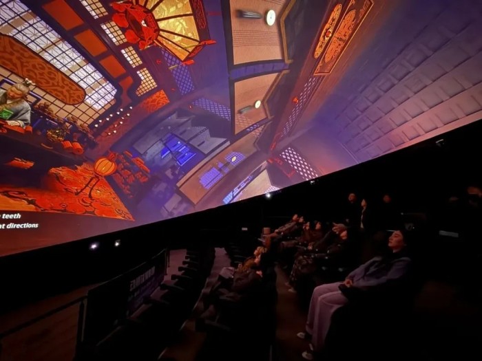 在參訪期間,師生們親身體驗(yàn)了球幕影院、飛行影院、沉浸式互動(dòng)空間以及飛行模擬器等相關(guān)領(lǐng)域的展項(xiàng)。并圍繞創(chuàng)作理念、技術(shù)參數(shù)以及落地實(shí)施等多個(gè)維度的事宜,與贏康的技術(shù)人員展開了深入的交流。