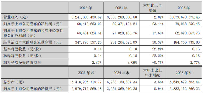 2026 年 3 月,深圳市紡織 (集團(tuán)) 股份有限公司(股票簡(jiǎn)稱:深紡織 A,股票代碼:000045、200045)發(fā)布 2025 年年度報(bào)告。報(bào)告顯示,公司全年實(shí)現(xiàn)營(yíng)業(yè)收入 32.41 億元,同比下降 2.82%;歸屬于上市公司股東的凈利潤(rùn) 6841.87 萬元,同比下降 23.44%;歸屬于上市公司股東的扣除非經(jīng)常性損益的凈利潤(rùn) 6343.40 萬元,同比下降 17.65%;基本每股收益 0.14 元。盡管受行業(yè)競(jìng)爭(zhēng)加劇等因素影響業(yè)績(jī)有所波動(dòng),但公司聚焦偏光片核心主業(yè),通過產(chǎn)品結(jié)構(gòu)優(yōu)化、技術(shù)創(chuàng)新突破等舉措,實(shí)現(xiàn)了經(jīng)營(yíng)穩(wěn)健發(fā)展。