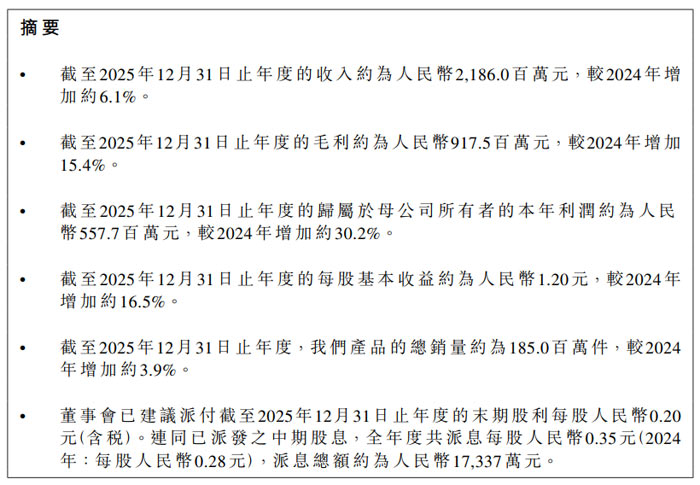 股東回報(bào)方面,公司董事會(huì)建議派付 2025 年末期股利每股 0.20 元(含稅),疊加已派發(fā)的中期股息每股 0.15 元,全年擬派息每股 0.35 元(含稅),較 2024 年的每股 0.28 元增長(zhǎng) 25.00%,派息總額約 1.73 億元,持續(xù)回饋股東。