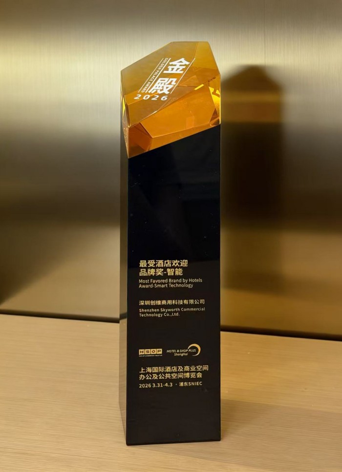 創(chuàng)維商用攜智慧酒店全場景解決方案精彩亮相,不僅收獲行業(yè)各界高度關注與認可,更斬獲2026上海酒店展金殿獎「最受酒店歡迎智能品牌獎」,載譽收官,實力彰顯行業(yè)標桿地位。